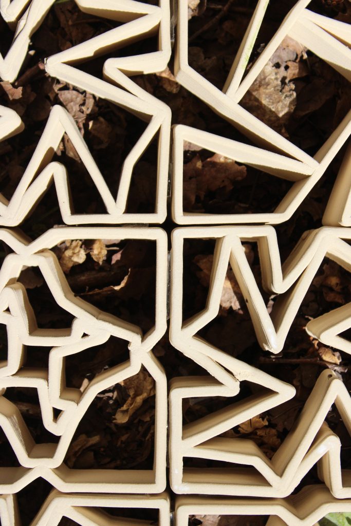 Son travail s’intéresse particulièrement aux systèmes géométriques issus des savoir-faire et de l’architecture traditionnels du Maroc, qu’elle aborde non comme des ornements, mais comme des structures actives capables de générer des formes, des objets et des récits. Elle cherche à décontextualiser le motif pour l’explorer comme un langage autonome, modulable et évolutif.