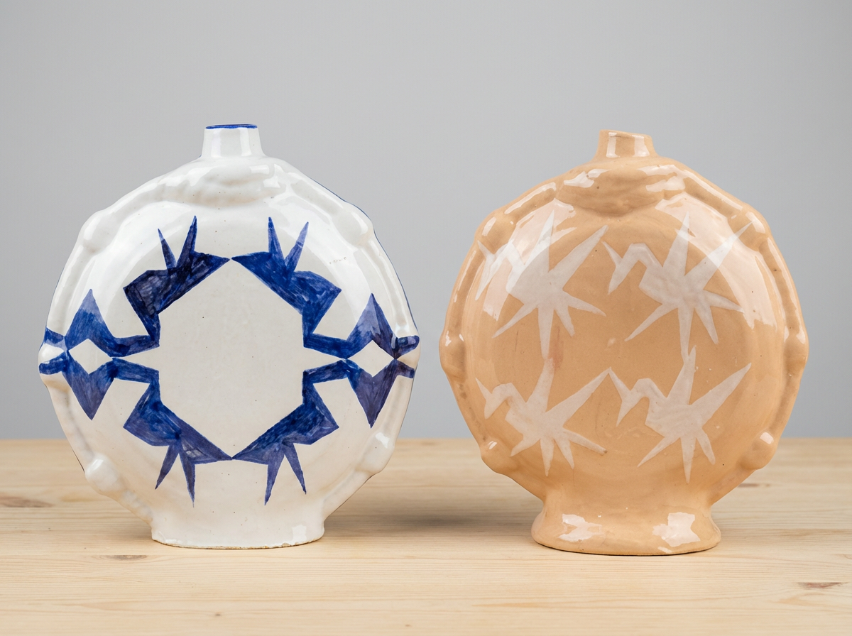 Ce projet est le fruit d’une recherche menée lors d’une résidence en céramique contemporaine à Martres-Tolosane, territoire marqué par une histoire riche de faïence et d’artisanat. À partir d’une gourde ancienne récupérée dans une ressourcerie locale, cette série de gourdes moulées prolonge la recherche sur le motif en l’appliquant à un objet du quotidien. Elle interroge la mémoire des formes, le lien entre usage, réemploi et territoire.